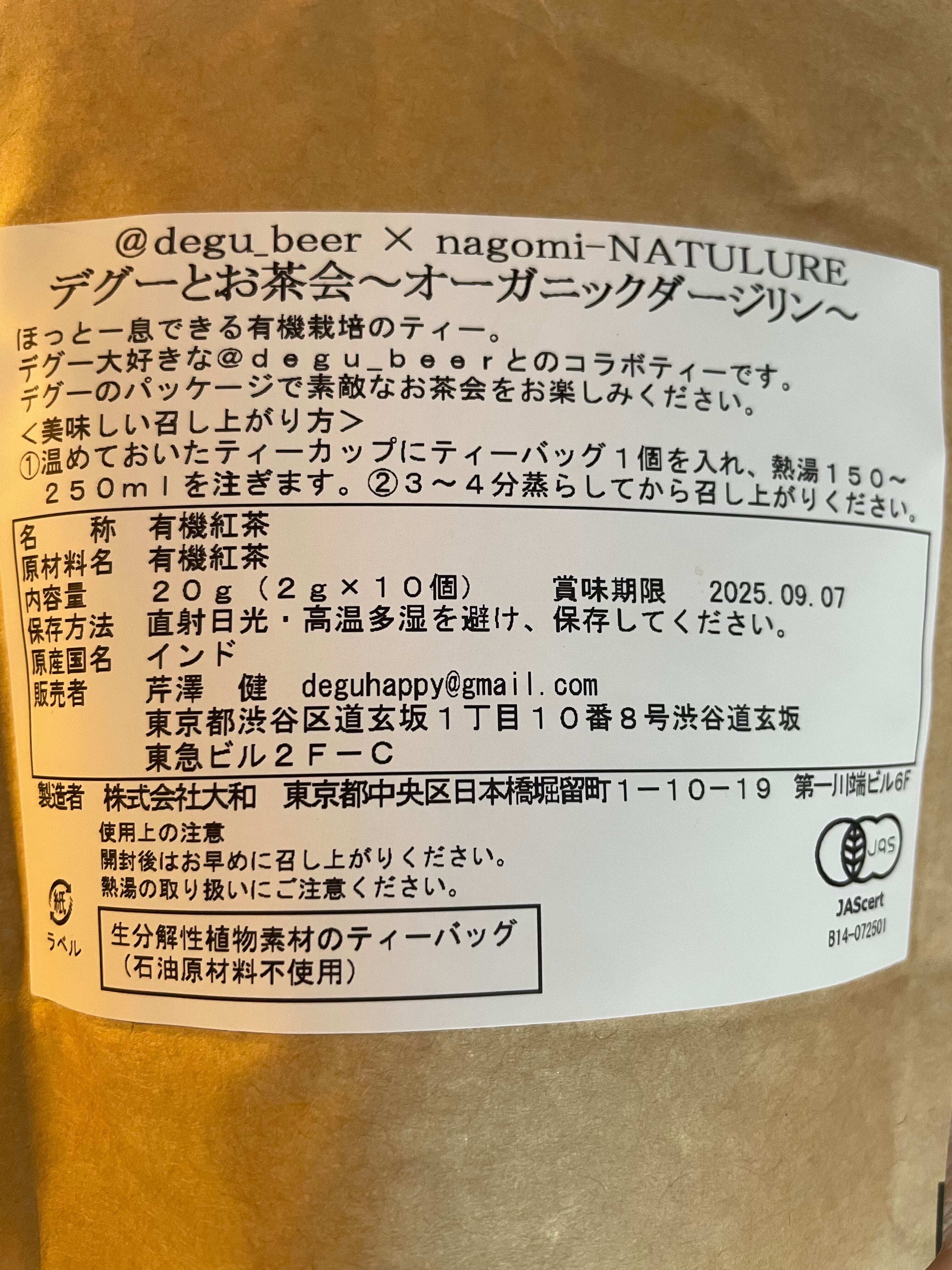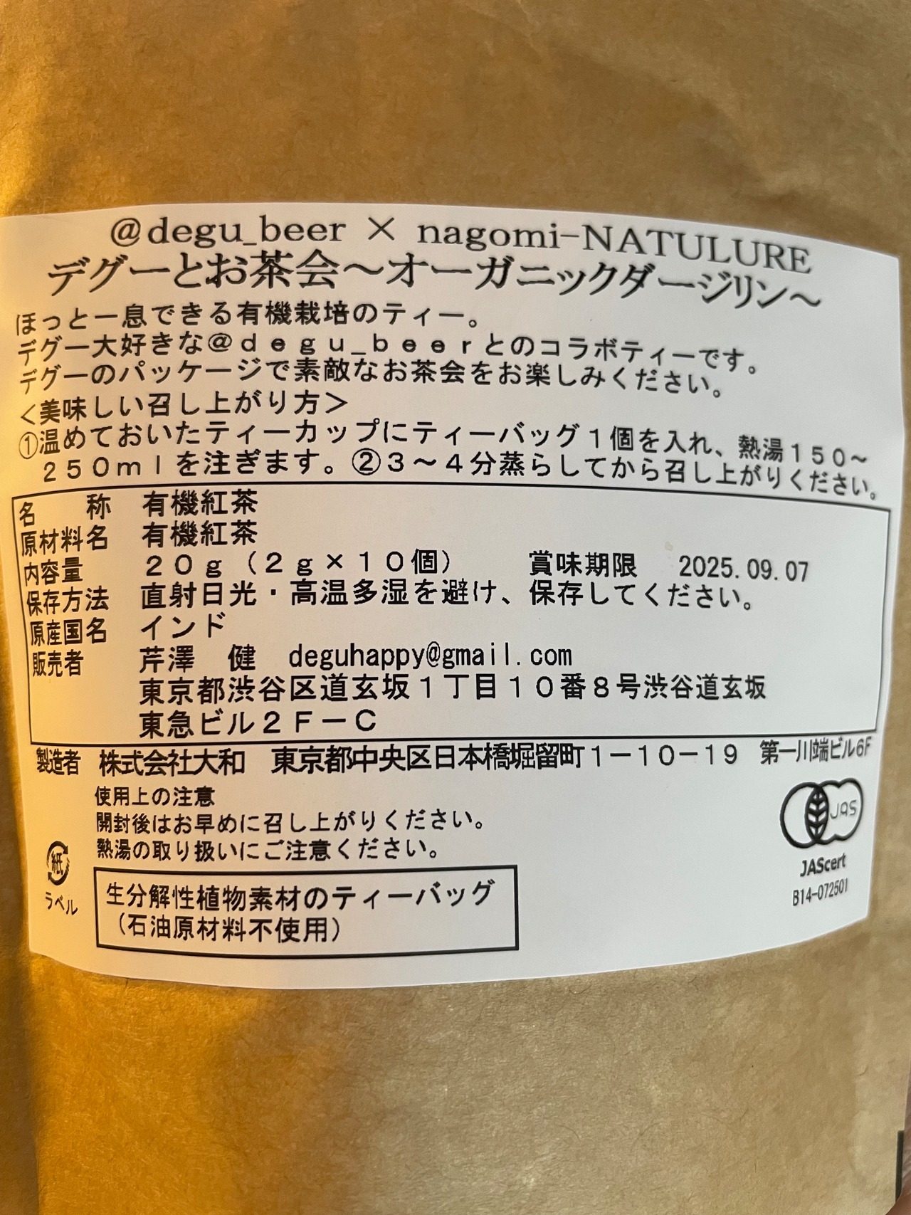 休肝日や、ノンアルコールの気分の時に、ホッと一息できる有機栽培のティーをチョイスし、デグーちゃんのパッケージに包みました。